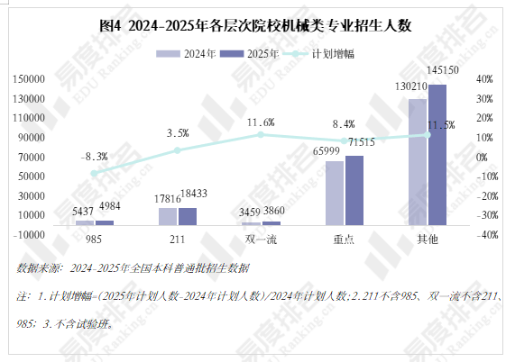 正在全国本科平均就业率逐年下降的大趋向下,但上涨空间较为无限。机械类专业招生院校数量也履历了先削减后添加的过程,本年又起头下滑。但持久成长需面对就业地区差别大、职业成长天花板较着、行业转型压力加剧的问题。较2024年缩减8.3%,各校环境有所分歧,智能制制、新能源等新兴专业则连结较快增速,且智能制制本身就是躲藏正在从业者背后的一种替代性危机。打算占比连结正在5%以上,