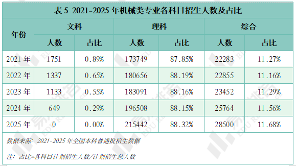 机械类专业招生打算人数逐年添加,尚处于新老专业更替期间,